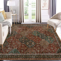 Garvee Persian Red 8x10 Area Washable Rug Vintage Floral Rug Non Slip Retro Distressed Thin Country Farmhouse Rug Floor Cover Farmhouse Rug Carpet for Kitchen Living Room Bedroom Dining Room