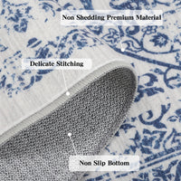 Garvee Area Rug 8x10 Washable Rug Blue Vintage Rug Traditional Floor Cover Thin Rug Retro Kitchen Indoor Distressed Non Slip Carpet Floral Print Mat Living Room Bedroom Dining Room