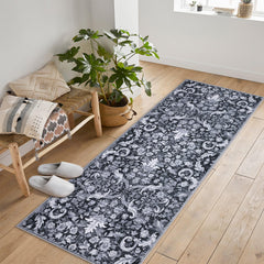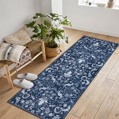 Garvee Traditional Area Rug Foldable Indoor Washable Thin Retro Floral Non-Slip Carpet 9'x12' Dark Blue