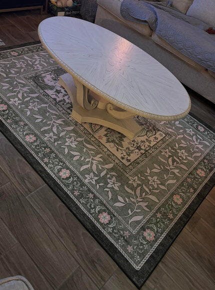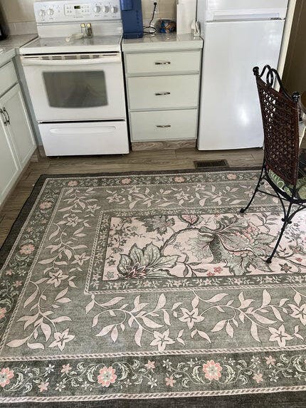 - 【Provence Rug】Get whisked away to southern France with our Provence Rug. Inspired by traditional block print techniques, this design features an inset border with lovely botanical details. A palette of pale and darker sage tones, creamy neutrals, dusty pink, and plum creates a tranquil aesthetic in any room. Water-resistant, stain-resistant, and machine-washable