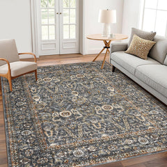 Garvee Area Rug 9x12 Washable Rug Light Grey, Persian Vintage Rugs, Ultra-Thin Foldable Vintage Rugs for Bedroom, Dining Room, Home Office, Pet & Child Friendly, Low Pile, Non-Shedding