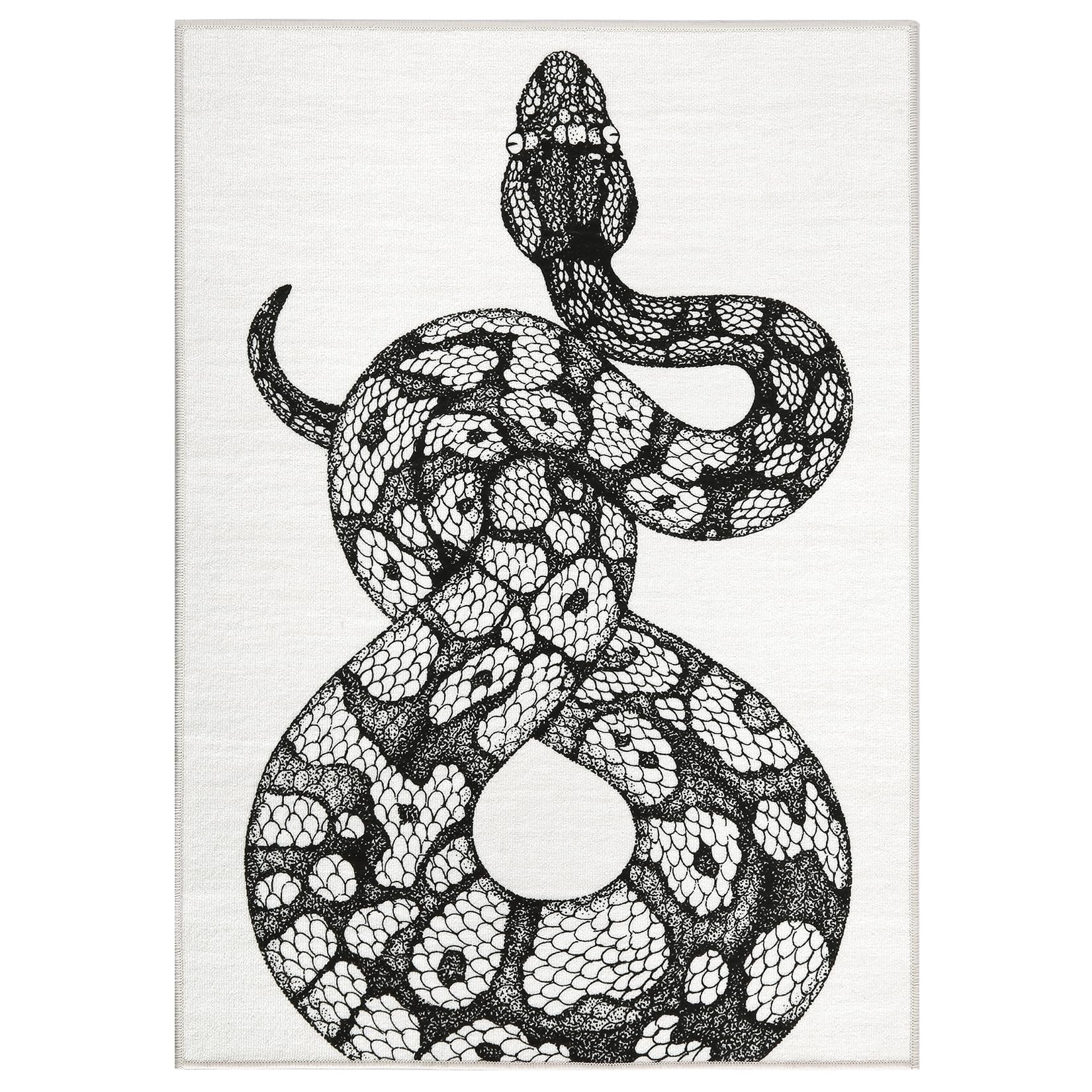 Elevate your living space with the GARVEE Washable Area Rug, featuring a captivating black and white snake pattern. This modern animal serpent design infuses classic Gothic charm into any room, making a bold statement in your home decor.