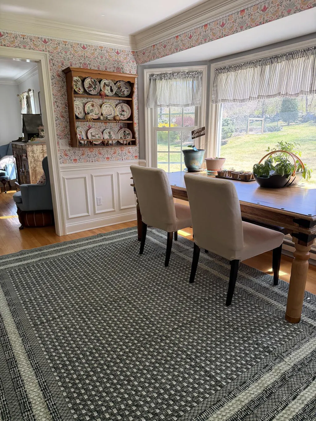 This 5x7 area rug brings a cozy, finished look to the living room while staying practical for everyday use. The bordered design adds a subtle touch of elegance that frames the space nicely without overpowering the decor. The texture is soft underfoot and feels comfortable even when sitting or walking barefoot. It lies flat right out of the packaging with no harsh creases or chemical odor, which is a pleasant surprise for a rolled rug.The surface feels durable yet gentle, making it suitable for homes with pets or kids. The non-slip backing grips the floor securely, keeping the rug in place even in high-traffic areas. I have it over hardwood flooring, and it has not shifted or curled at the edges. The pile is low enough to allow easy vacuuming while still adding a soft layer of comfort. It also fits easily under furniture without bunching.After several weeks of daily use, the rug still looks clean and plush. It handles light spills and dust well and can be washed or spot-cleaned without losing its shape or texture. Compared to other washable rugs I have owned, this one keeps its color richness longer and dries faster after cleaning.Maintenance is simple. I vacuum it twice a week and do an occasional gentle wash when needed. It remains soft and fresh every time. Overall, this rug is an excellent blend of comfort, practicality, and understated style, perfect for adding warmth to living rooms, bedrooms, or home offices.