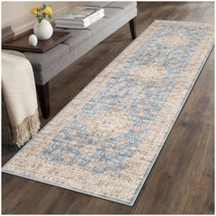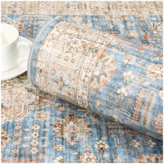 Garvee Area Rug Living Room Rug 10x13 Washable Rug Non Slip Backing Vintage Rug Soft Indoor Distressed Carpet Oriental Aesthetic Throw Carpet Foldable Thin Rug for Bedroom Nursery Dorm Office Blue
