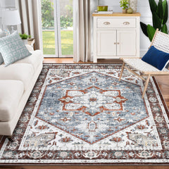 Garvee Machine Washable Vintage Farmhouse Area Rug Rust Print Distressed Design Ultra Soft Non-Slip Carpet for Living Room Bedroom Dining Room Dorm Office Home Decor