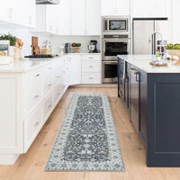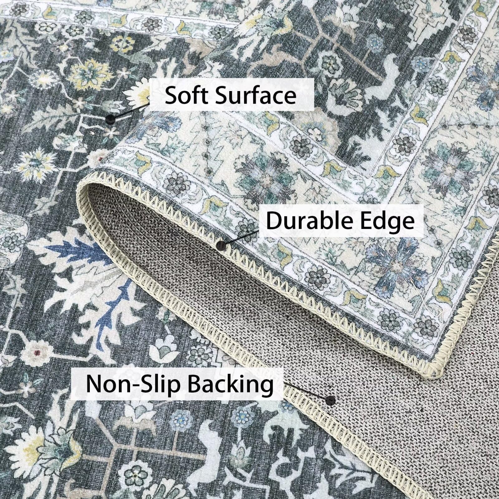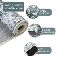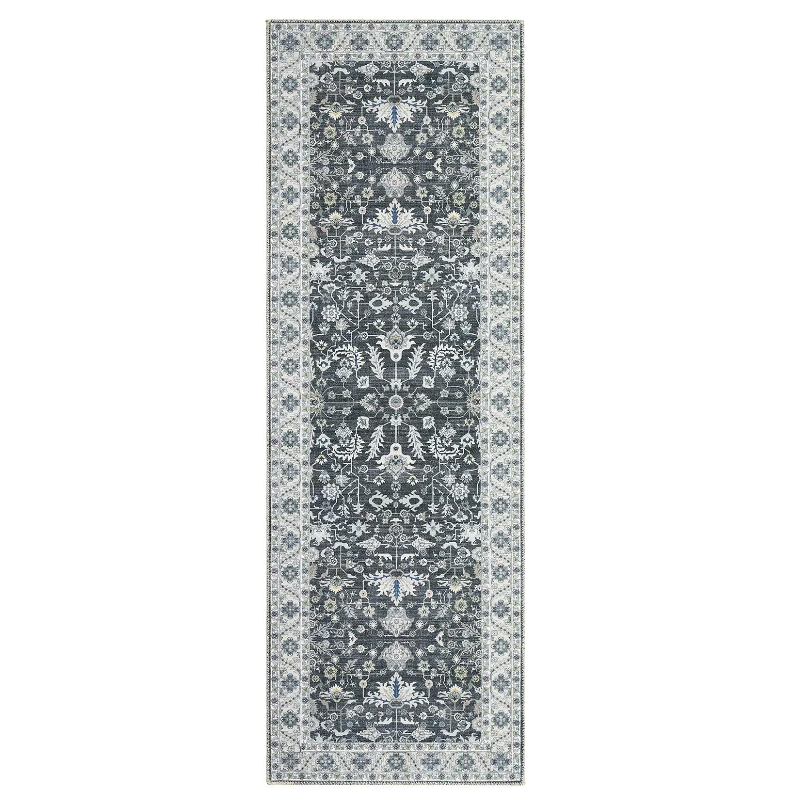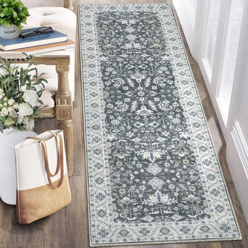 Garvee Washable Runner Rug, 2x6 Non Slip Vintage Hallway Kitchen Runner Rug Distressed Floral Print Oriental Rugs Foldable Thin Rug Retro Accent Rug Runner for Laundry Bathroom Bedroom, Grey