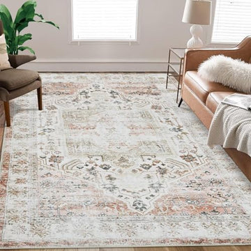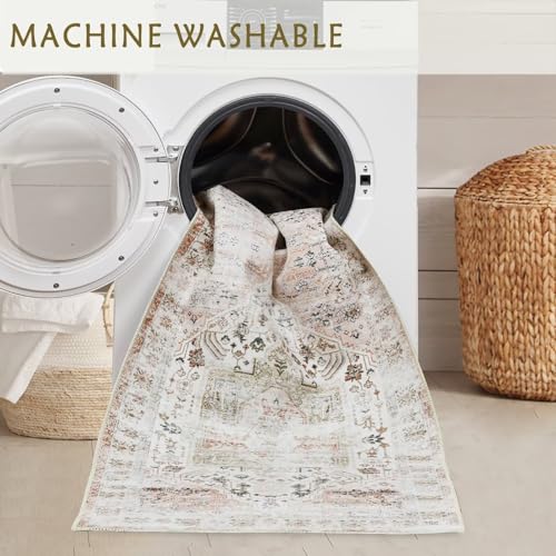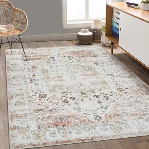 Garvee Area Rug Vintage Rug Machine Washable Rug for Bedroom Living Room Indoor Floor Cover Foldable Lightweight Thin Rug Distressed Carpet Non Slip Chenille Rug - Taupe / 6'x9'