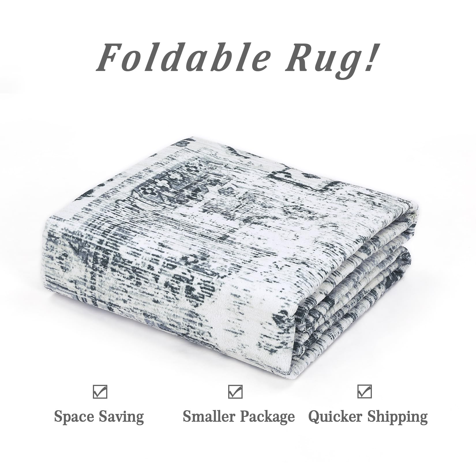 Garvee Area Rug Vintage Rug Machine Washable Rug for Bedroom Living Room Indoor Floor Cover Foldable Lightweight Thin Rug Distressed Carpet Non Slip Chenille Rug - Grey / 2'x3'