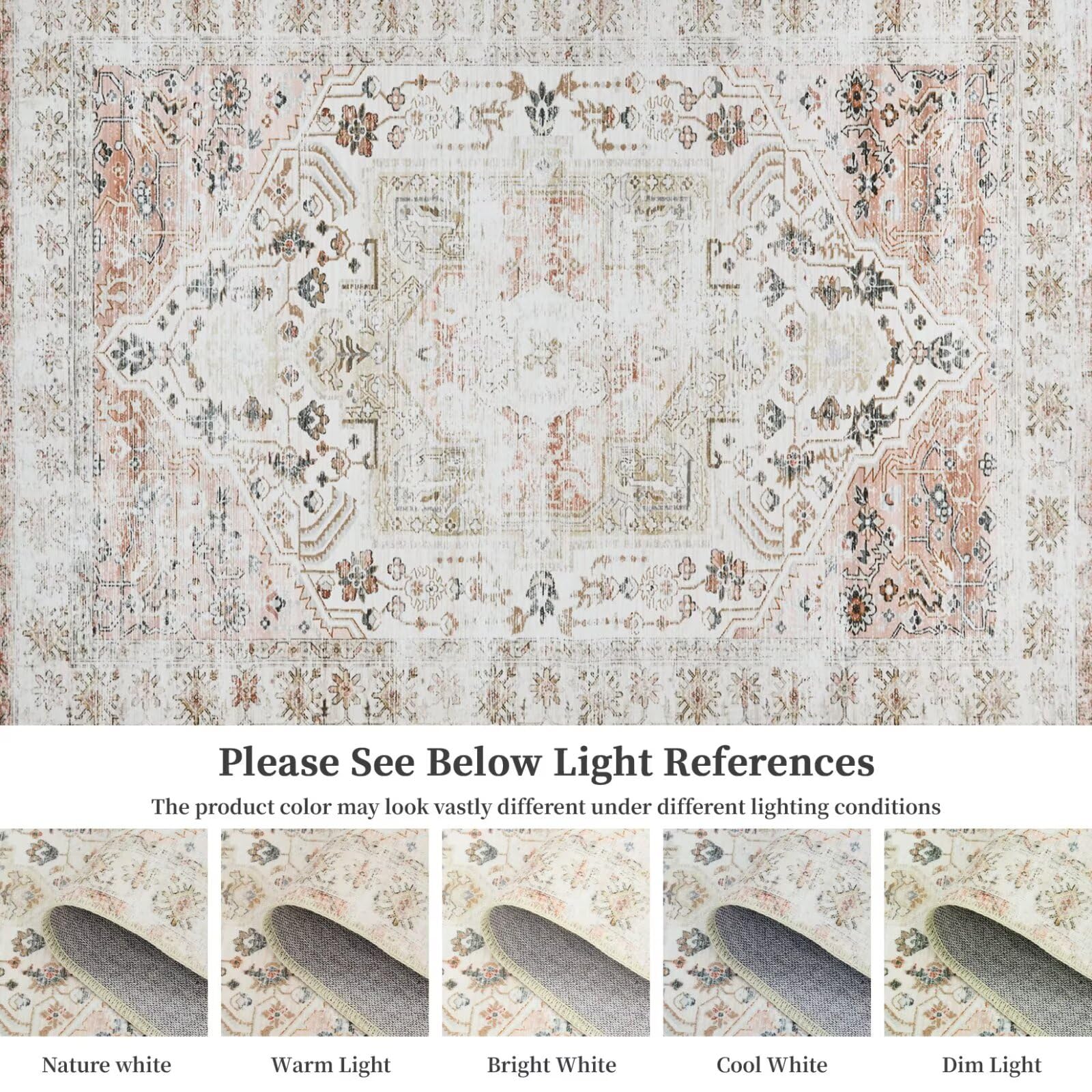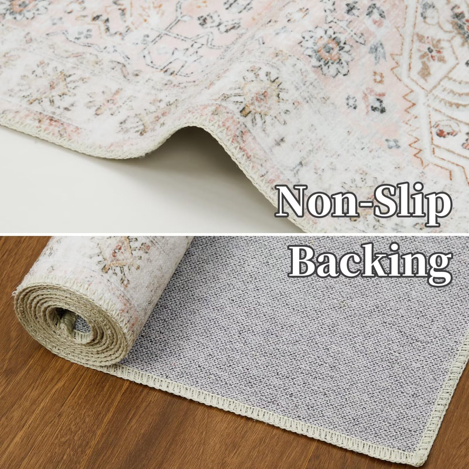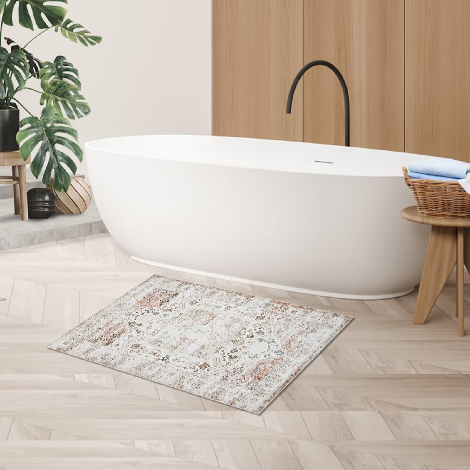 Garvee Area Rug Vintage Rug Machine Washable Rug for Bedroom Living Room Indoor Floor Cover Foldable Lightweight Thin Rug Distressed Carpet Non Slip Chenille Rug - Taupe / 2'x3'