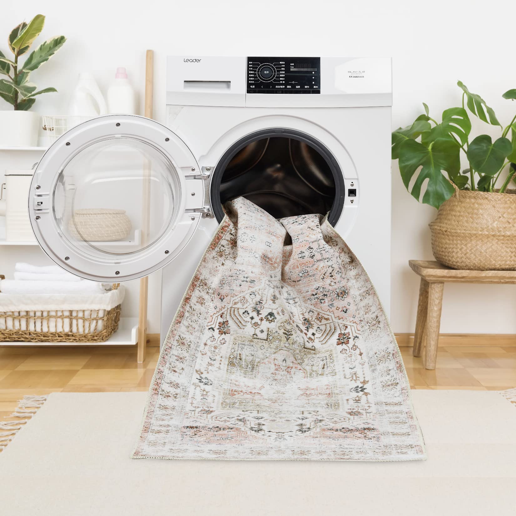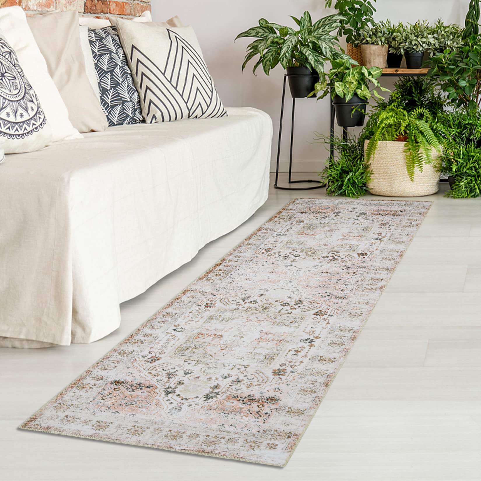 Garvee Vintage Rug 2x8 Tribal Entryway Rug Runner Kitchen Runner Rug Soft Hallway Runners Oriental Floral Printed Floor Cover Non Slip Foldable Rug Washable Indoor Living Room Bedroom Dining Beige