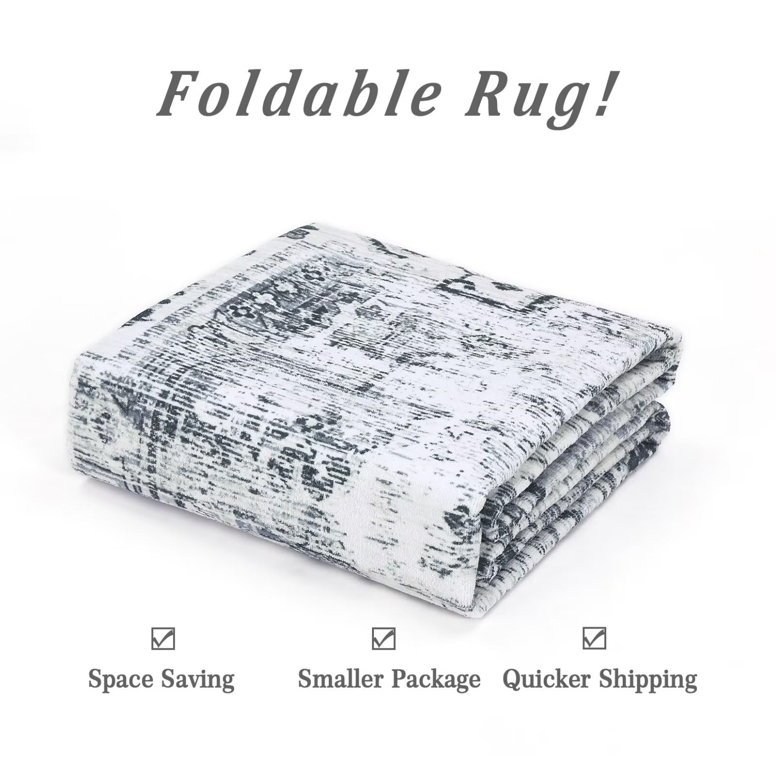 Garvee Vintage Rug 8x10 Distressed Area Rugs Machine Washable Rug Grey Indoor Floor Cover Carpet Rug Soft Velvet Mat Foldable Accent Rug for Living Room Bedroom Dining Room, 8' x 10', Grey