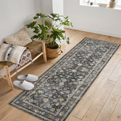 Garvee Vintage Washable Area Rug Non Slip Non Shedding Floral Soft Throw Rug for Bedroom Living Room Dining Entryway Bathroom Kitchen Nursery