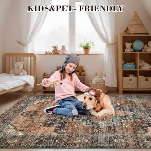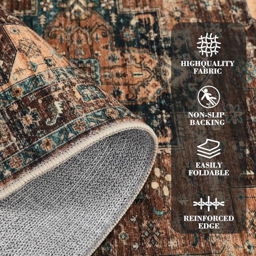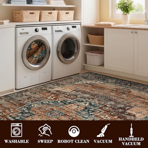 Garvee Persian Brown 10x13 Area Rugs, Large Machine Washable Oriental Carpet for Living Room, Non-Slip Vintage Floor Carpet, Stain-Resistant Soft Low Pile Distressed Accent Rugs for Bedroom
