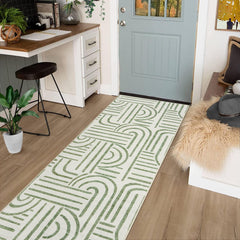 Garvee Washable 10x13 Area Rugs Abstract Soft Rainbow Non Slip Rubber Back Green for Living Room Bedroom Dining Room