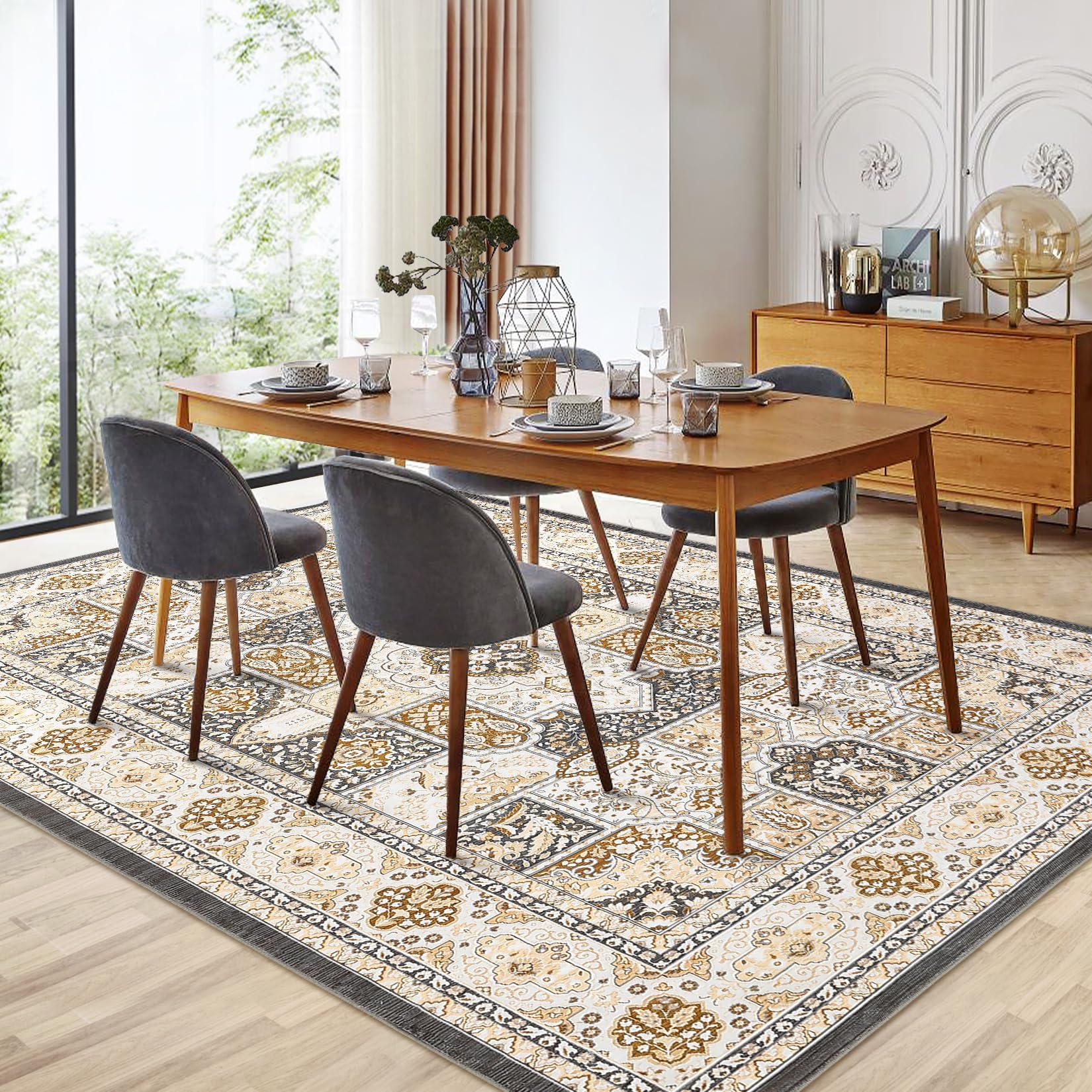 Garvee Area Rugs 8x10 for Living Room, Machine Washable Rugs Floor Carpet for Bedroom, Non-Shedding Vintage Rugs for Indoor High Traffic Areas, Low Pile Non-Slip Rug for Dining Room Office Home Decor