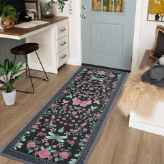 Garvee Washable 8x10 Area Rugs Floral Non Slip Low Pile Stain Resistant Pink for Living Room Bedroom Dining Room