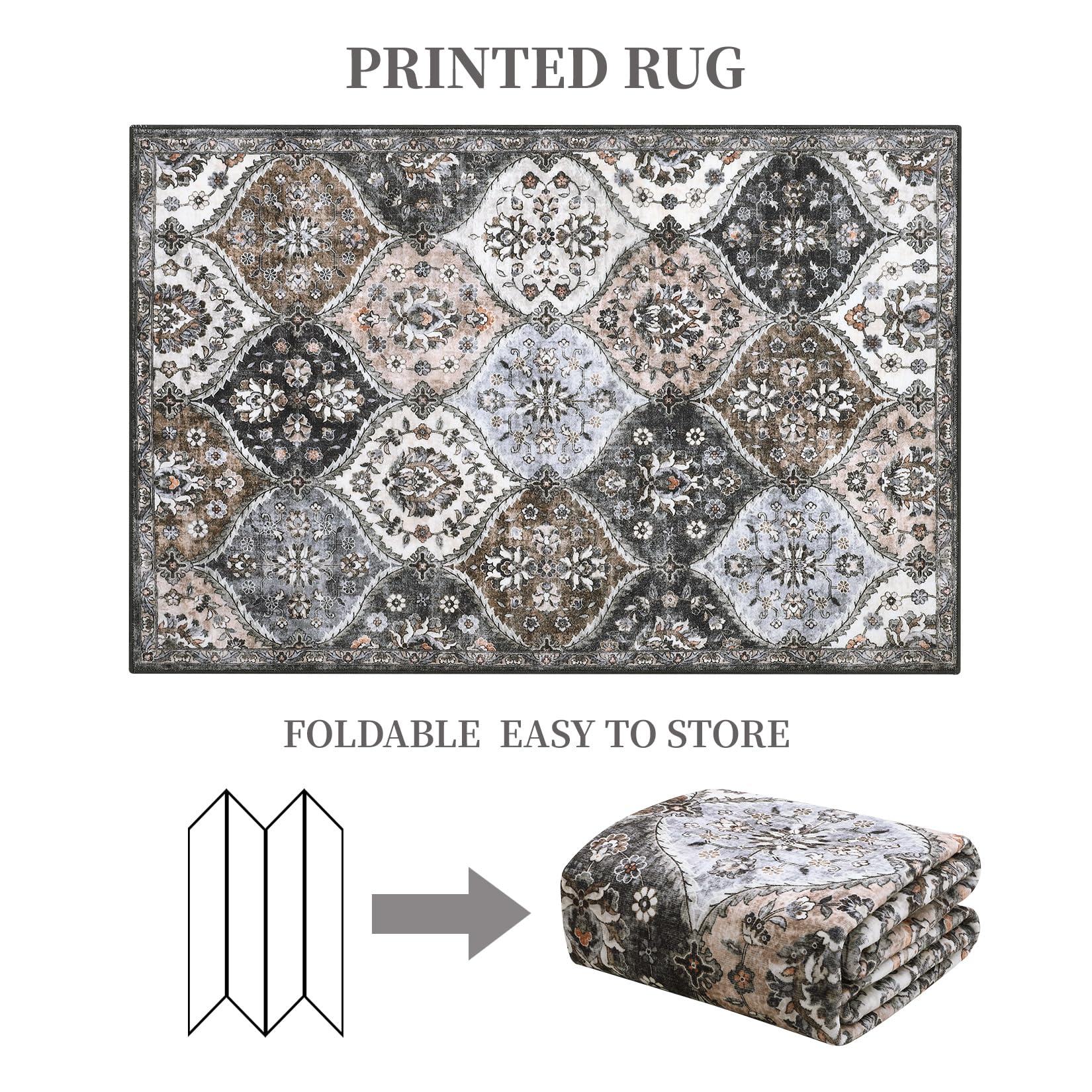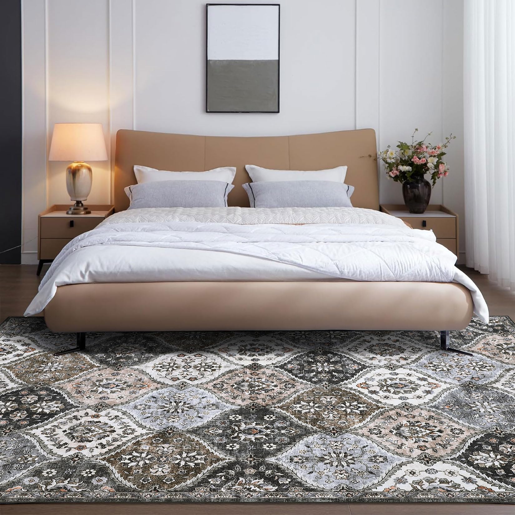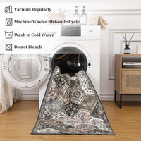 Garvee Area Rugs 8x10 Washable Moroccan Rug for Bedroom Living Room, Vintage Trellis, Non Slip, Stain Resistant, Faux Wool, Low Pile, Grey/Brown