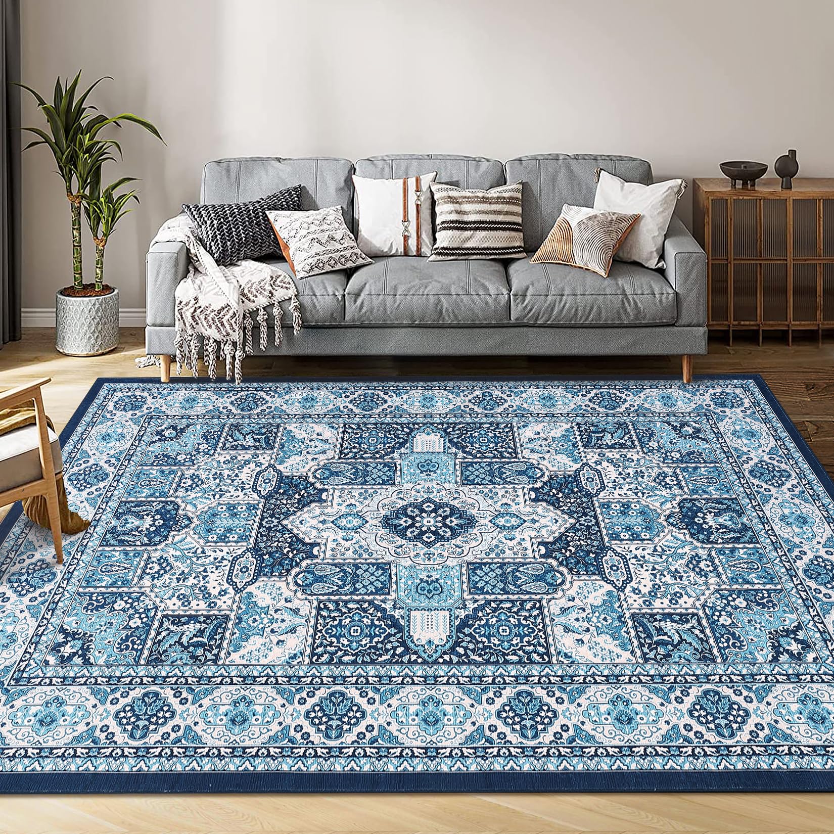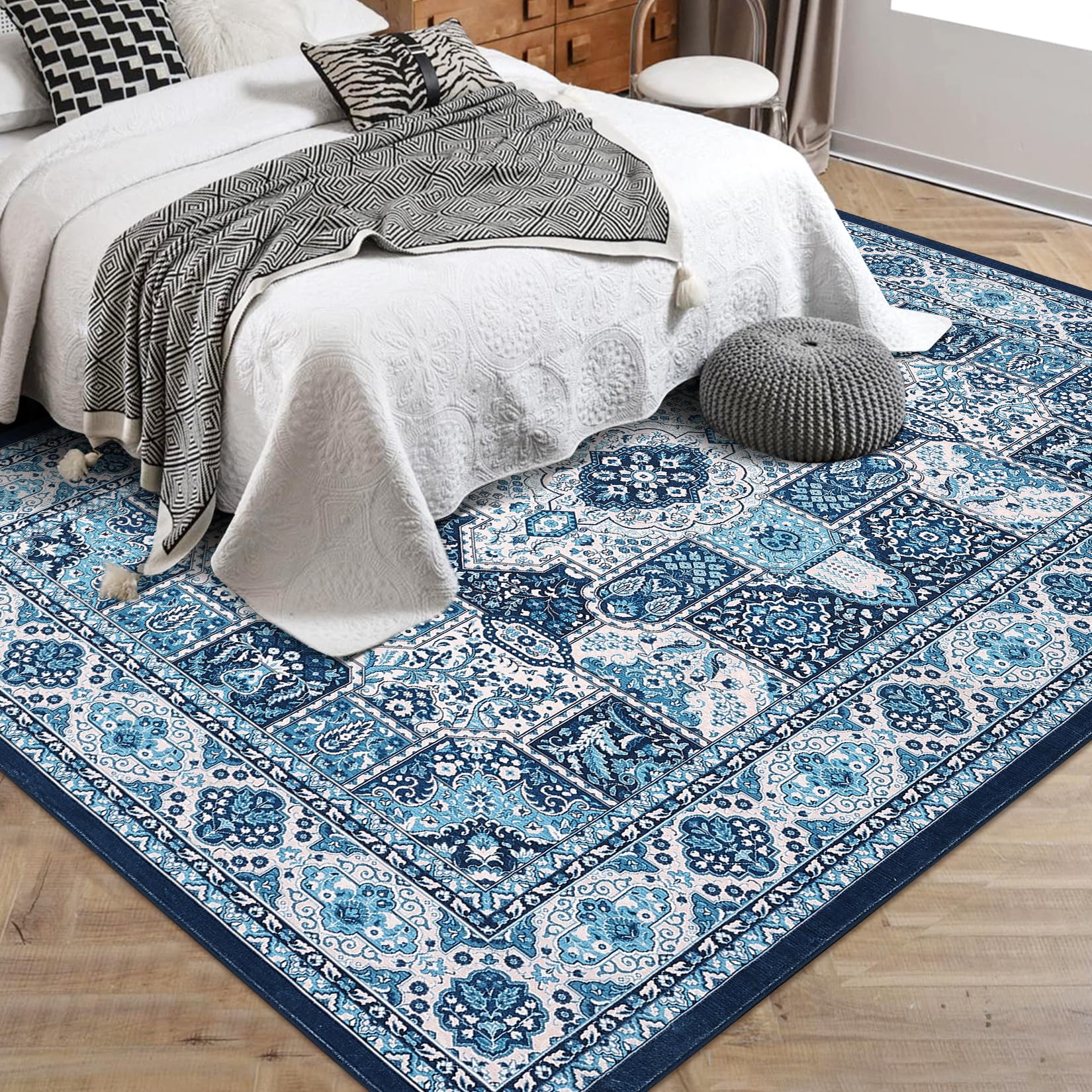 Garvee Area Rugs 9x12 for Living Room, Machine Washable Rugs Floor Carpet for Bedroom, Non-Shedding Vintage Rugs for Indoor High Traffic Areas, Low Pile Non-Slip Rug for Dining Room Office Home Decor