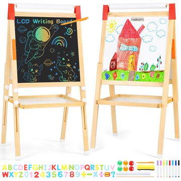 Garvee Kids Art Easel LCD Whiteboard Adjustable Height Magnetic Wood Pine