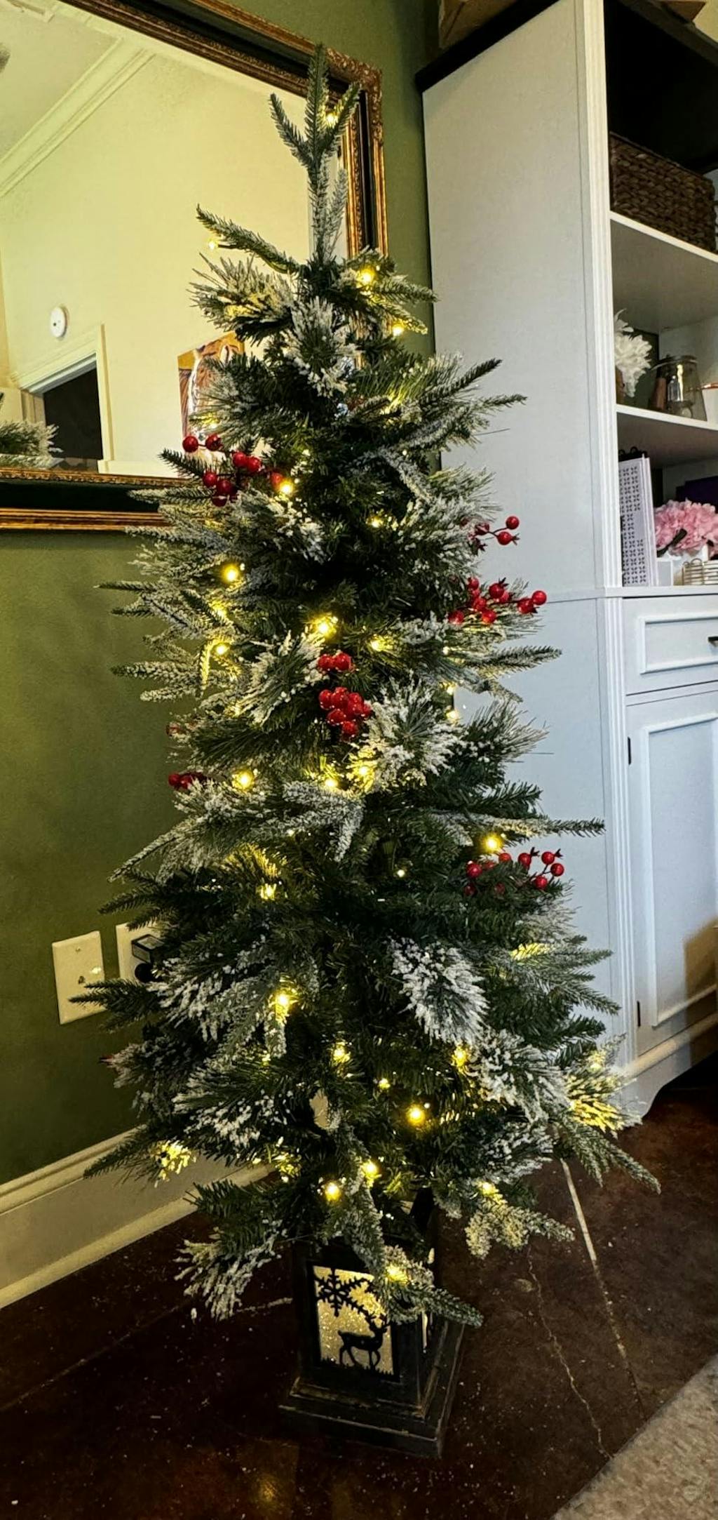 - 4ft tall snow flocked Christmas tree for a winter wonderland feel