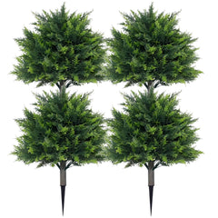 Gravee Artificial Cypress Topiary Outdoor Plants with Spike, Ever Green Planter Filler Indoor, UV Resistance Topiary Ball Trees with Ground Spike for Front Porch Garden(4PCS)