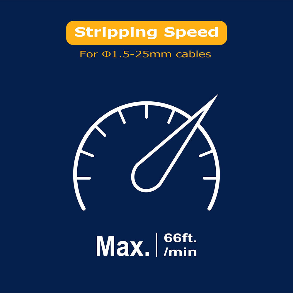 Works at a blazing fast stripping speed of 66 ft/min. Strip wires effortlessly without damaging the wire's core.