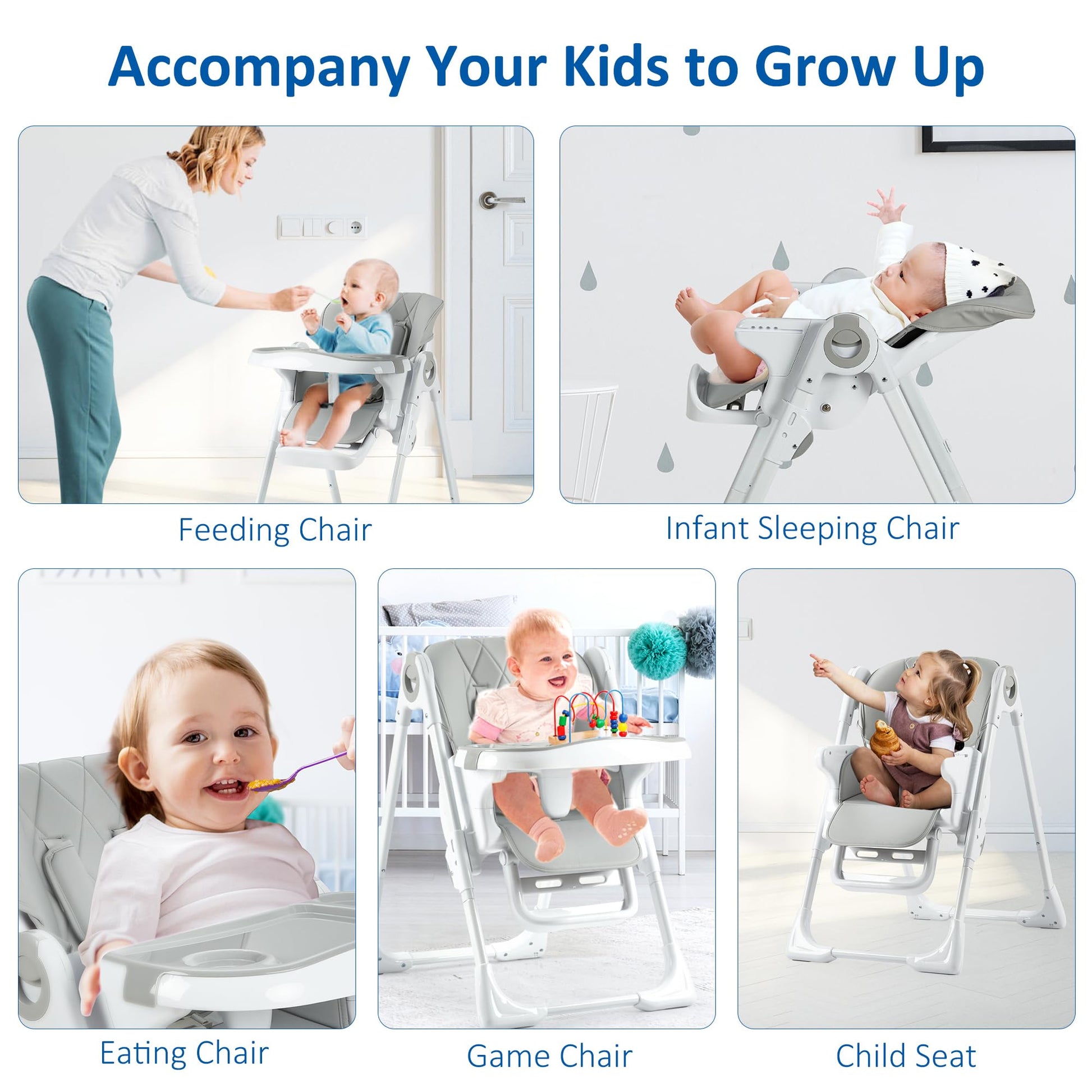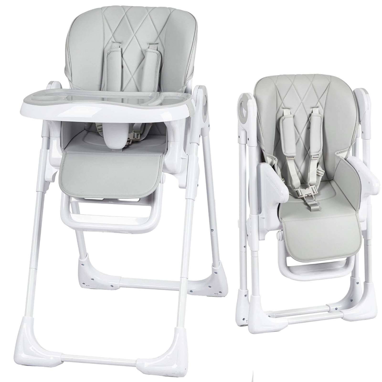 Garvee Baby High Chair Adjustable Height Aluminum Frame Easy Clean Foldable Grey Suitable for Feeding Play Lightweight