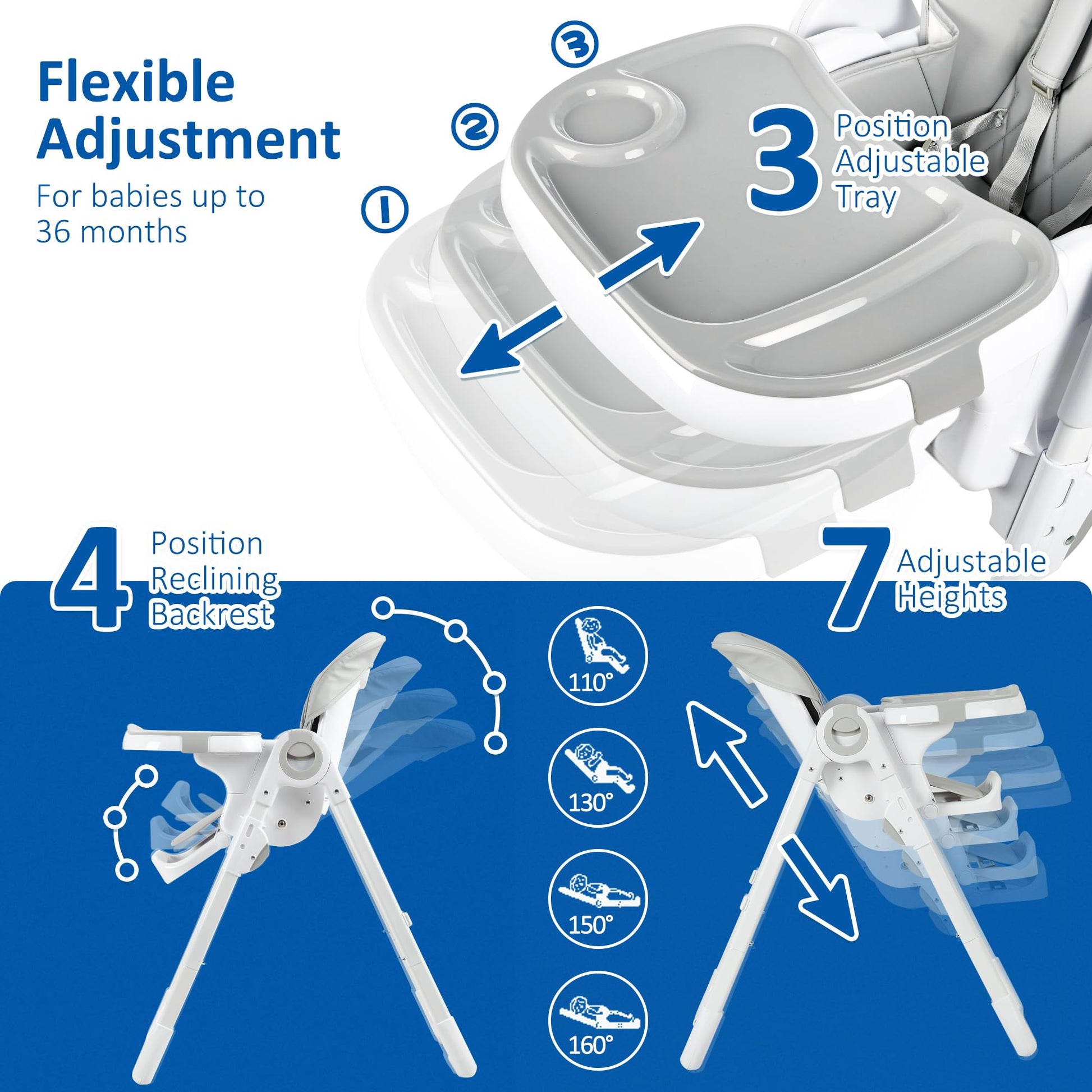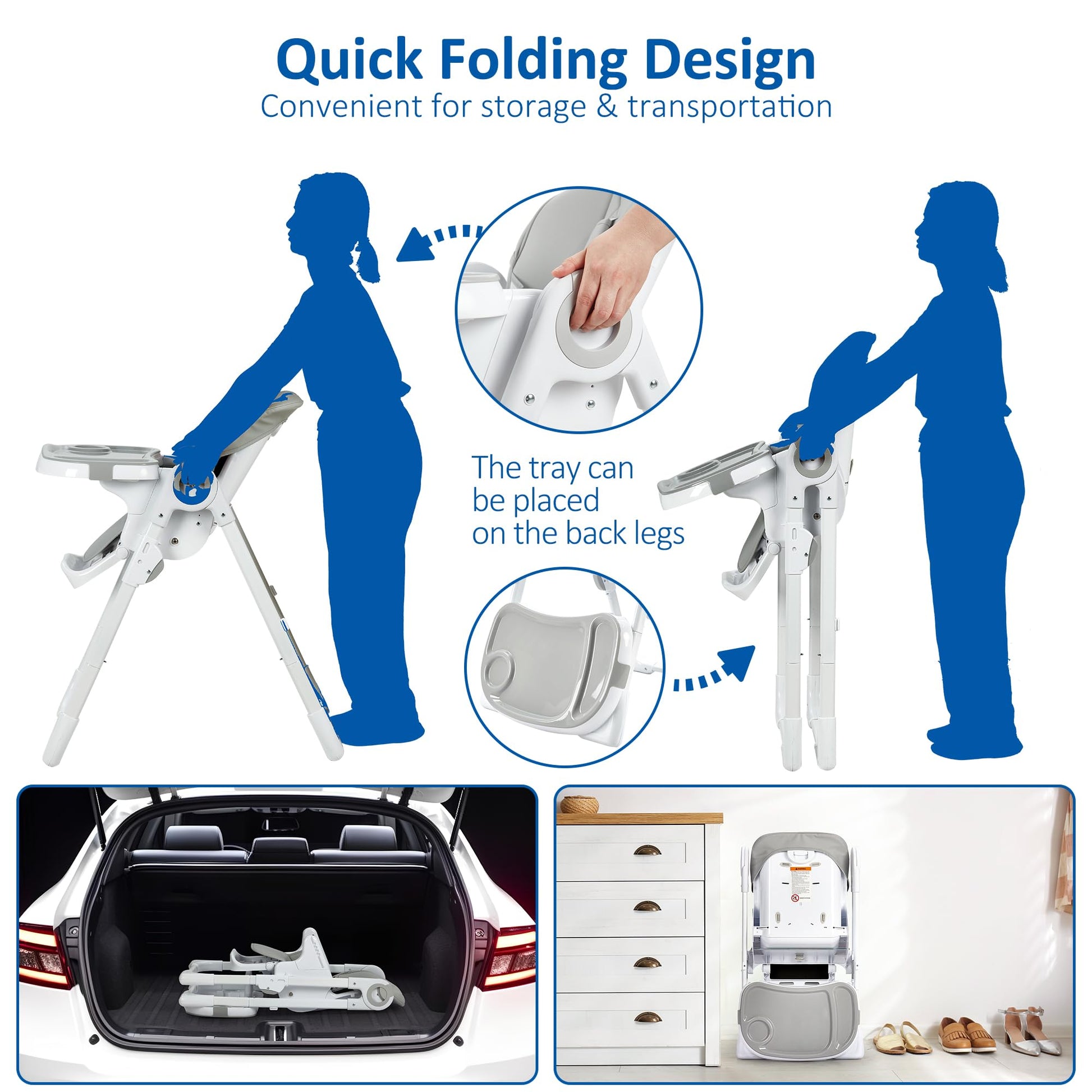 Dishwasher-safe tray and wipeable PU seat make cleaning a breeze, while the one-click fold design ensures easy storage.