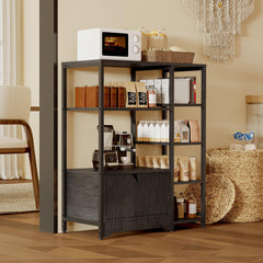 Garvee Bakers Rack with Storage Cabinets, Metal Frame & Solid Wood Shelves, Scratch-Resistant Countertop, Industrial 5-Tier Freestanding Microwave Stand for Dining Room, Kitchen, Brown