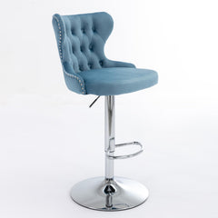 Garvee Modern Swivel Barstools PU Leather Upholstered Adjustable Height Bar Stools for Home Pub Kitchen Island Light Blue One Size
