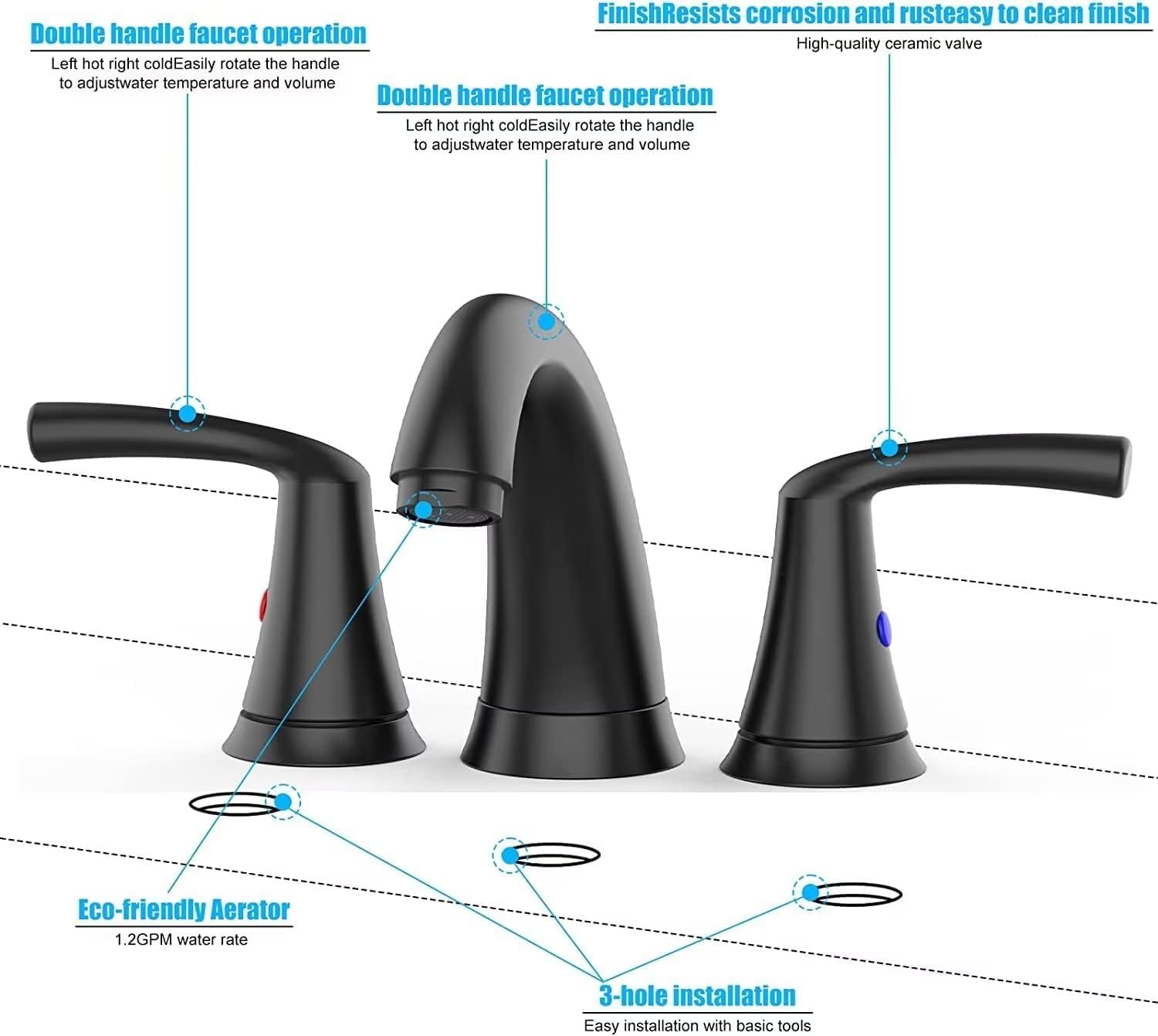Garvee Bathroom Faucet 3 Hole 8 Inch Widespread Bathroom Faucet - 8 Inch / Black