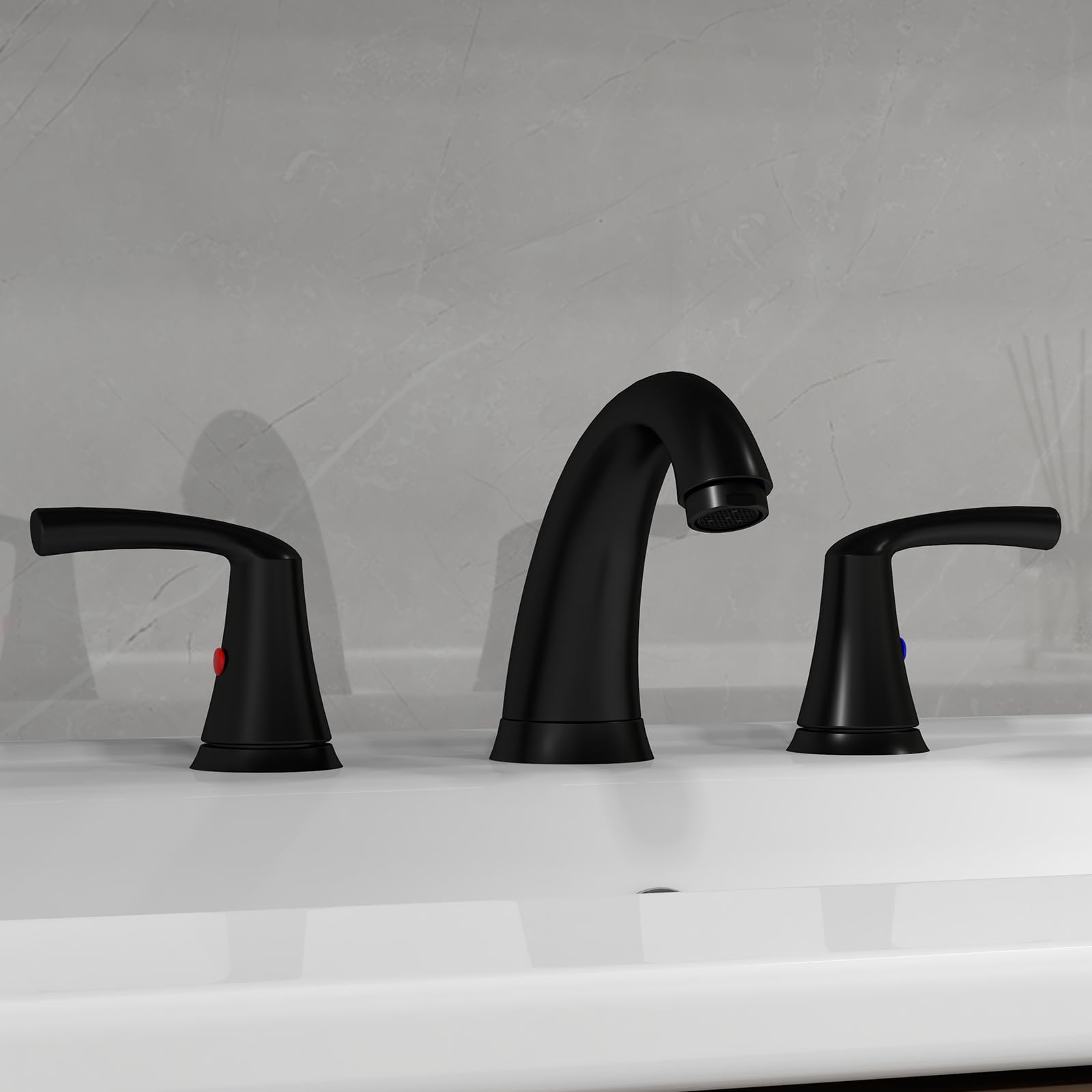 Elevate your bathroom with the GARVEE 3 Hole 8 Inch Widespread Bathroom Faucet in Matte Black