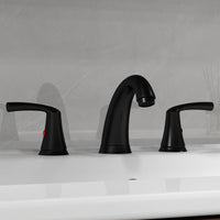 The GARVEE Bathroom Faucet combines a graceful gooseneck spout with separate lever handles, perfect for transitional to modern decor. Constructed with ceramic disc cartridges for long-lasting performance, this matte black faucet is both stylish and durable.