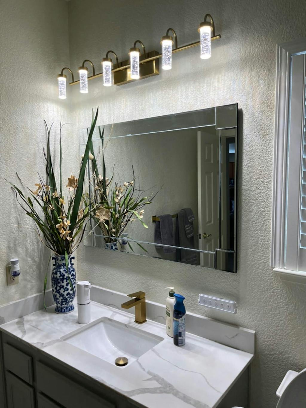 - Brushed Gold Bath Wall Sconce adds a luxurious touch