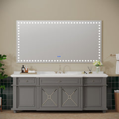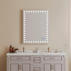Garvee 40x32 Inch Bathroom Mirror with 3 White Front Circular Lights, Touch Dimming Switch, Anti-Fog, Memory, Shatter-Proof, White