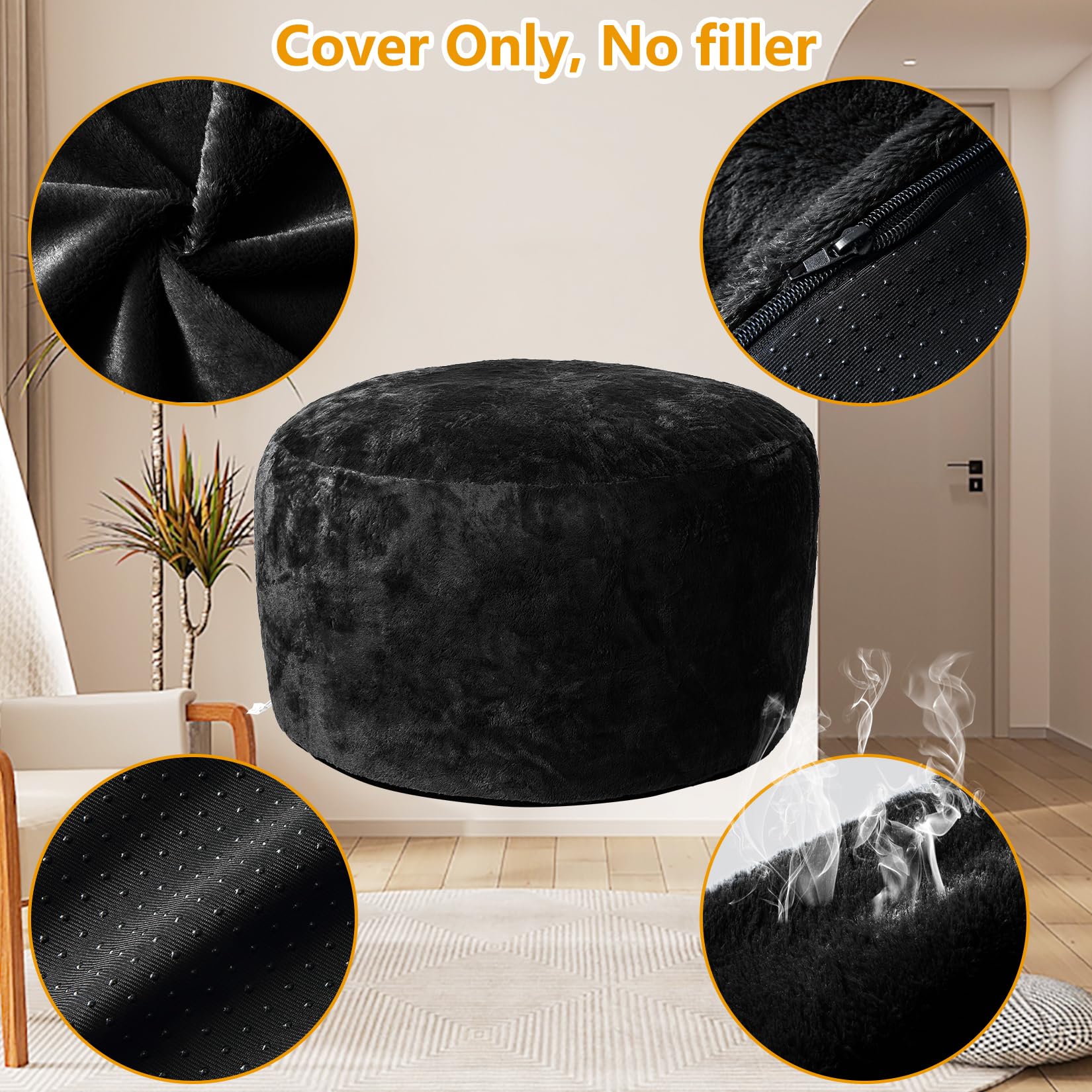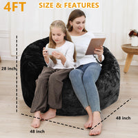 Garvee Bean Bag Chair Cover in Black (Cover Only, No Filler) - Fits Large Bean Bag Chairs, Faux Fur Sofa, and Living Room Sofa Bed - 4ft Size in PV Fur Material