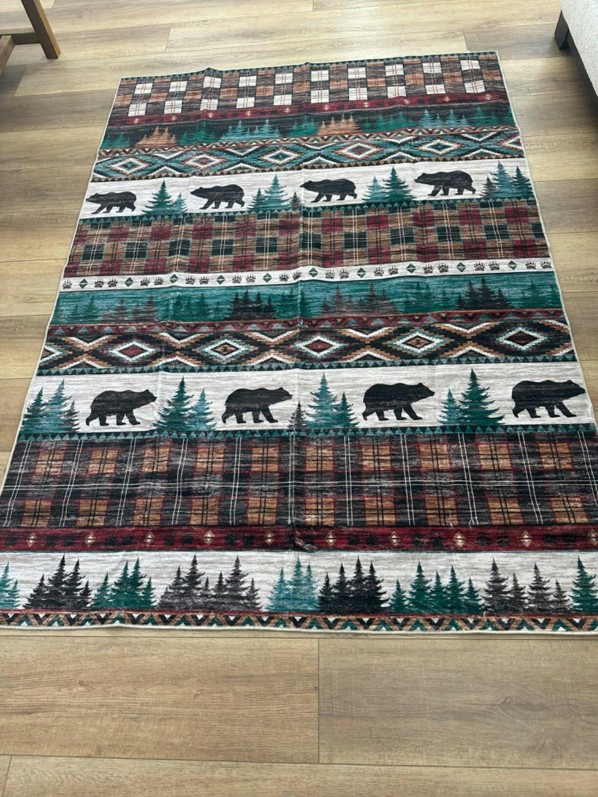 Garvee Christmas Bedroom Area Rug 3x5 Christmas Small Rug Washable Rustic Throw Floor Covers Non-Slip Stain Resistant Boho Rug Xmas Decorative Rug Festival Farmhouse Carpet for Living Room Kitchen, Green