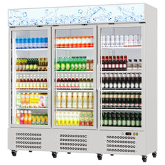 - 【Triple Sets of Double-Layer Tempered Glass Doors】 Featuring 3 sets of double-layer tempered glass doors, this 3 door display refrigerator offers superior thermal insulation and durability. Each door has an automatic anti-fog function, ensuring clear visibility of internal items from any angle, which greatly enhances product display effects in retail stores.
