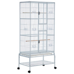 Garvee Bird Cage, Metal Cage Standing Birdcage with Play Top, Monitor and Light System, Flight Cage with Side-Out Tray for Parrots Cockatiels Conures Parakeets Lovebirds Budgie Finch, White