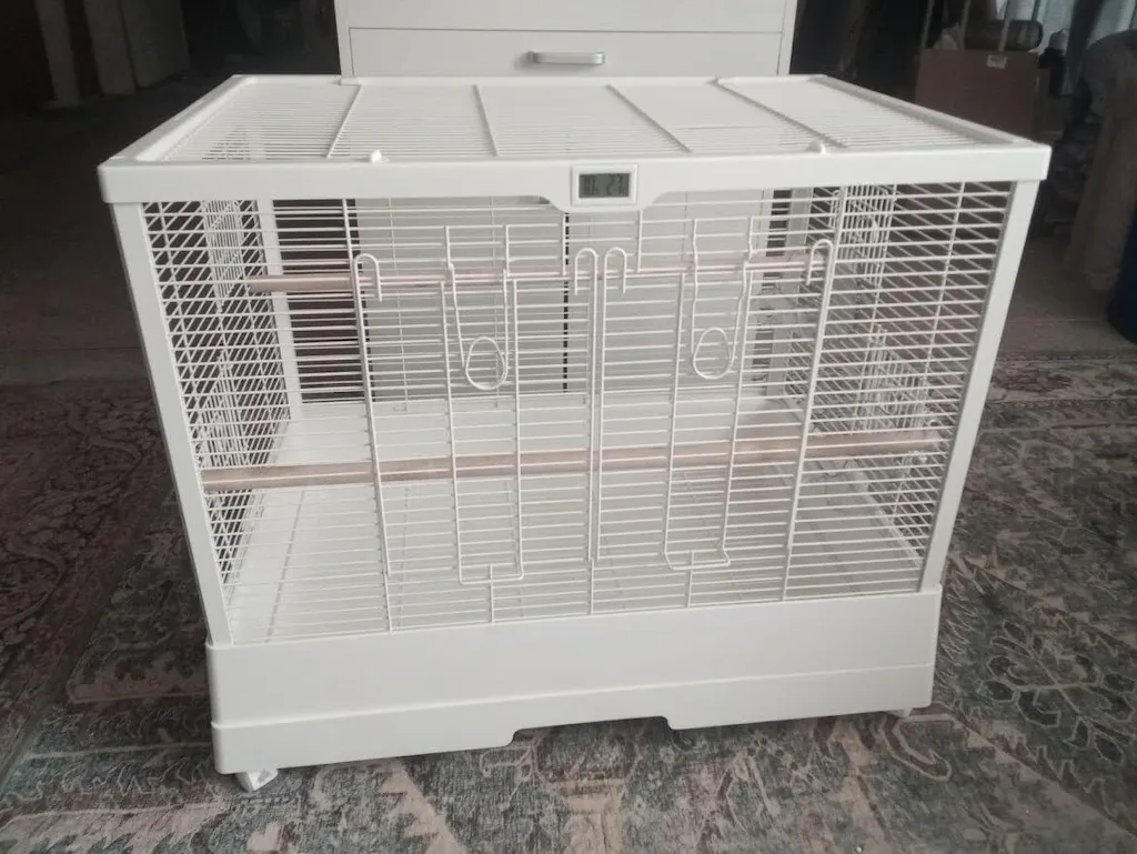 This spacious cage offers an ideal habitat for my flight friends, with dimensions that strike the perfect balance between flight freedom and cozy perching areas. While the unit arrived with minor cosmetic blemishes (two visible scratches on the powder-coated surface), I’ve opted to retain it due to its exceptional functional design – particularly the thoughtful shelf integration that simplifies feeding and enrichment.The slightly thinner gauge metal gives me pause compared to our previous industry-standard Per Vue model, but the streamlined construction hasn’t compromised immediate stability. I’m cautiously optimistic about long-term durability and will monitor the scratched areas for potential oxidation. That said, the clever layout and generous interior volume have already made it a favorite retreat for my bird, proving that thoughtful design can sometimes outweigh pristine finishes. A calculated compromise that currently satisfies both avian needs and owner practicality.
