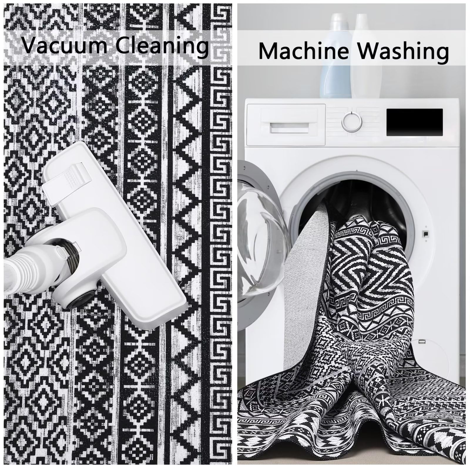 Garvee Black Boho Rug 9 x 12 Washable Rug Large Area Rug with Non Slip Backing for Dining Room, Bedroom Low-Pile Rug Non-Shedding Rugs for Living Room Home Office Area Rug Black and White