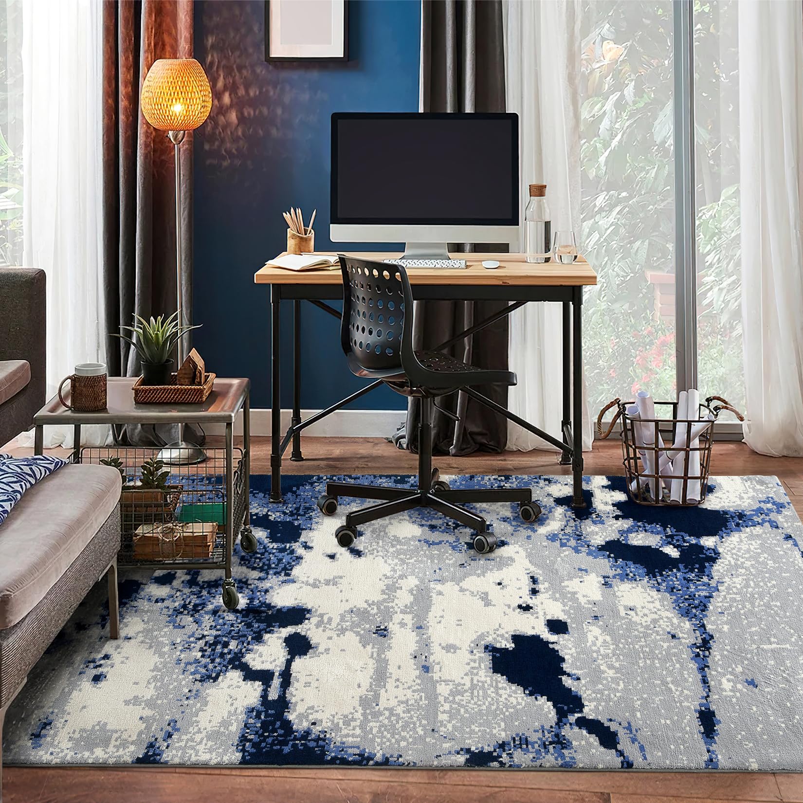 Garvee Modern Abstract Blue Area Rug – 9x12 Luxury Non-Slip Carpet for Living Room & Bedroom, Extra Large Stylish Design
