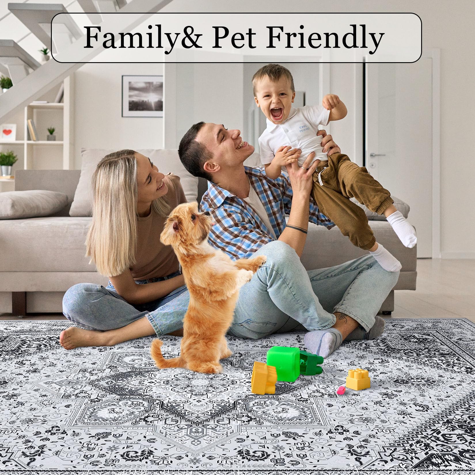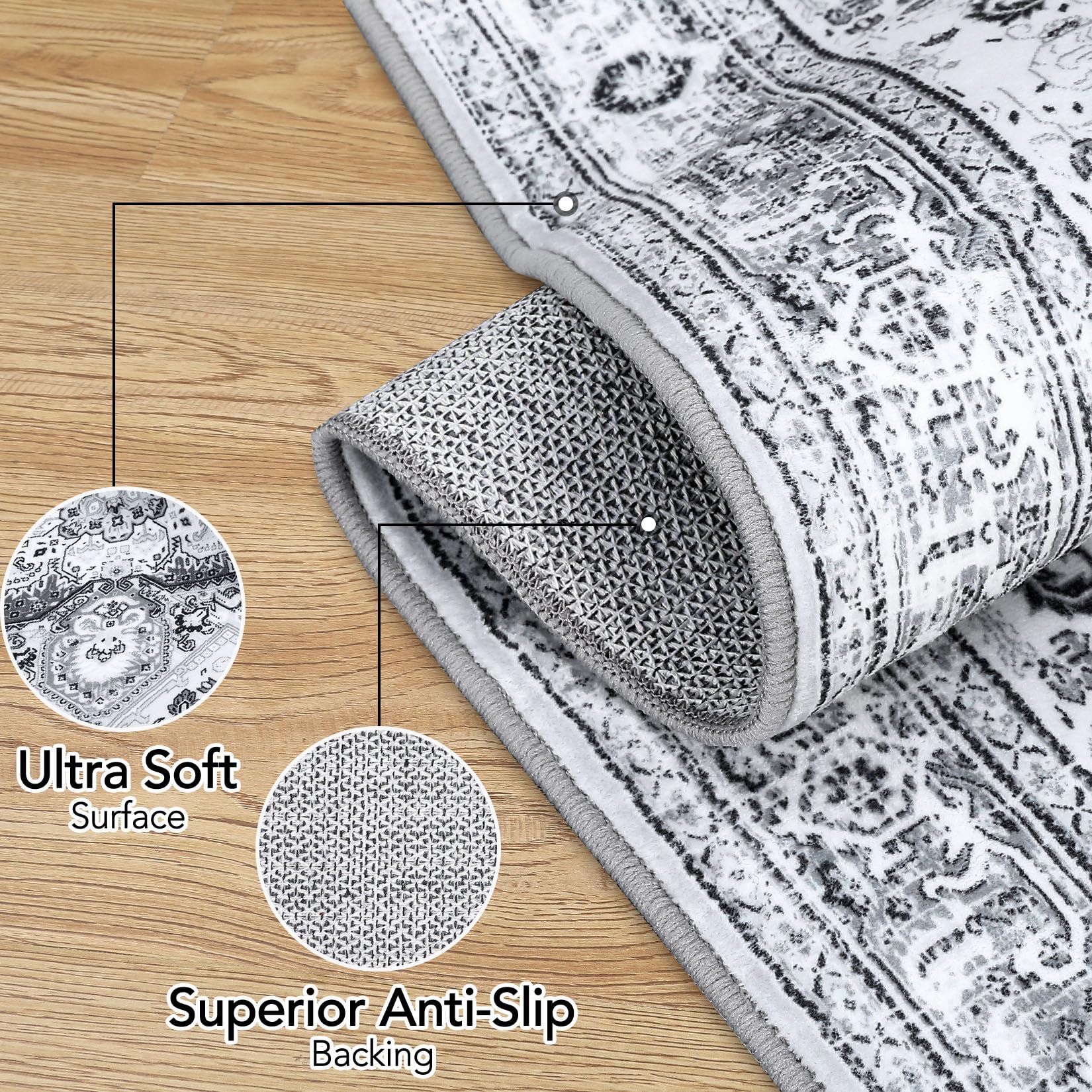 - 【NON-SLIP AREA RUG】-Our non-slip rug is made of high quality backing, which keeps the rug securely in place and effective at preventing the rug from sliding on the floor, while protecting the floor from scratches made by heels and sharp objects, safe for everyday indoor busy area for kids or pets activity.