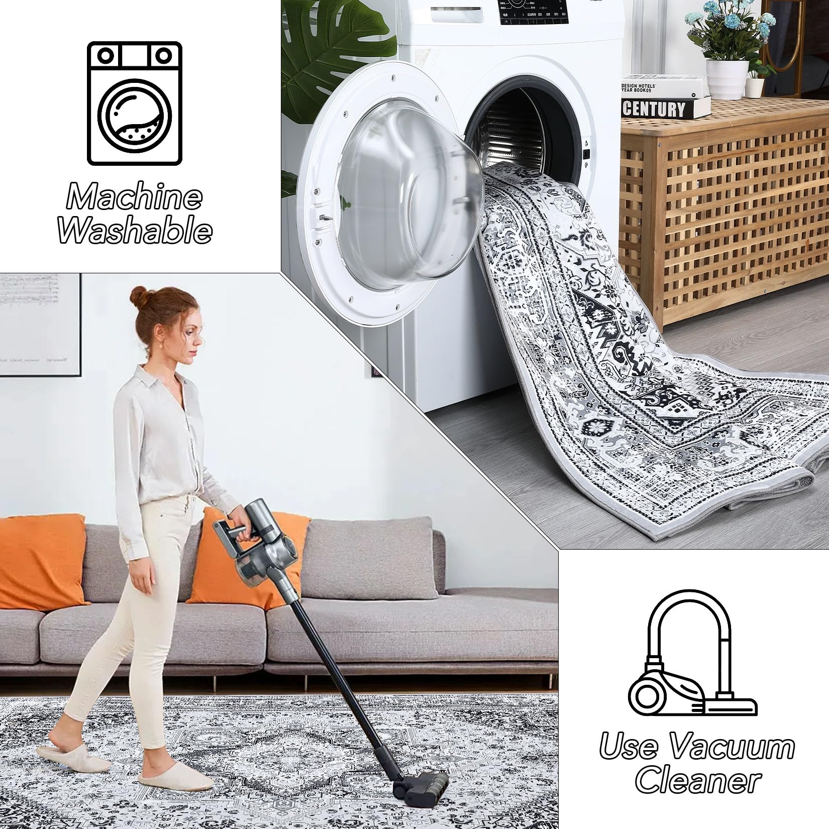 - 【MACHINE WASHABLE RUG】-Machine washable rug helps to make life much easier. Simply throw it in the washing machine. Wash with cold water, mild detergent, no bleach. Air dry, do not iron. The colors of the rug are vibrant and would not fade when it comes out even after several washes.