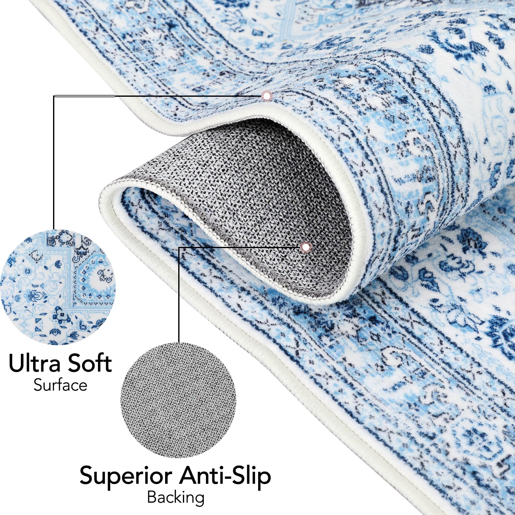 - 【NON-SLIP AREA RUG】-Our non-slip rug is made of high quality backing, which keeps the rug securely in place and effective at preventing the rug from sliding on the floor, while protecting the floor from scratches made by heels and sharp objects, safe for everyday indoor busy area for kids or pets activity.