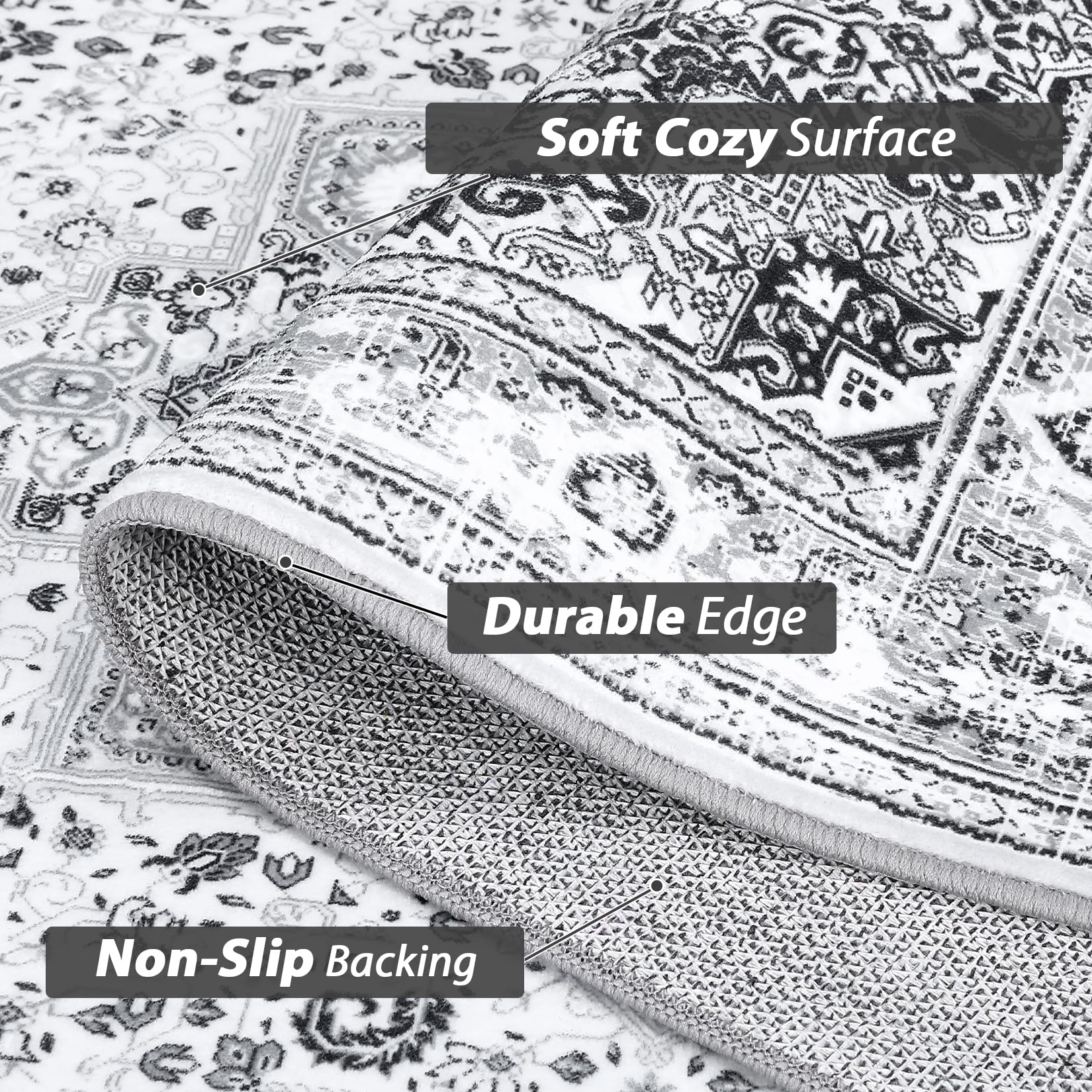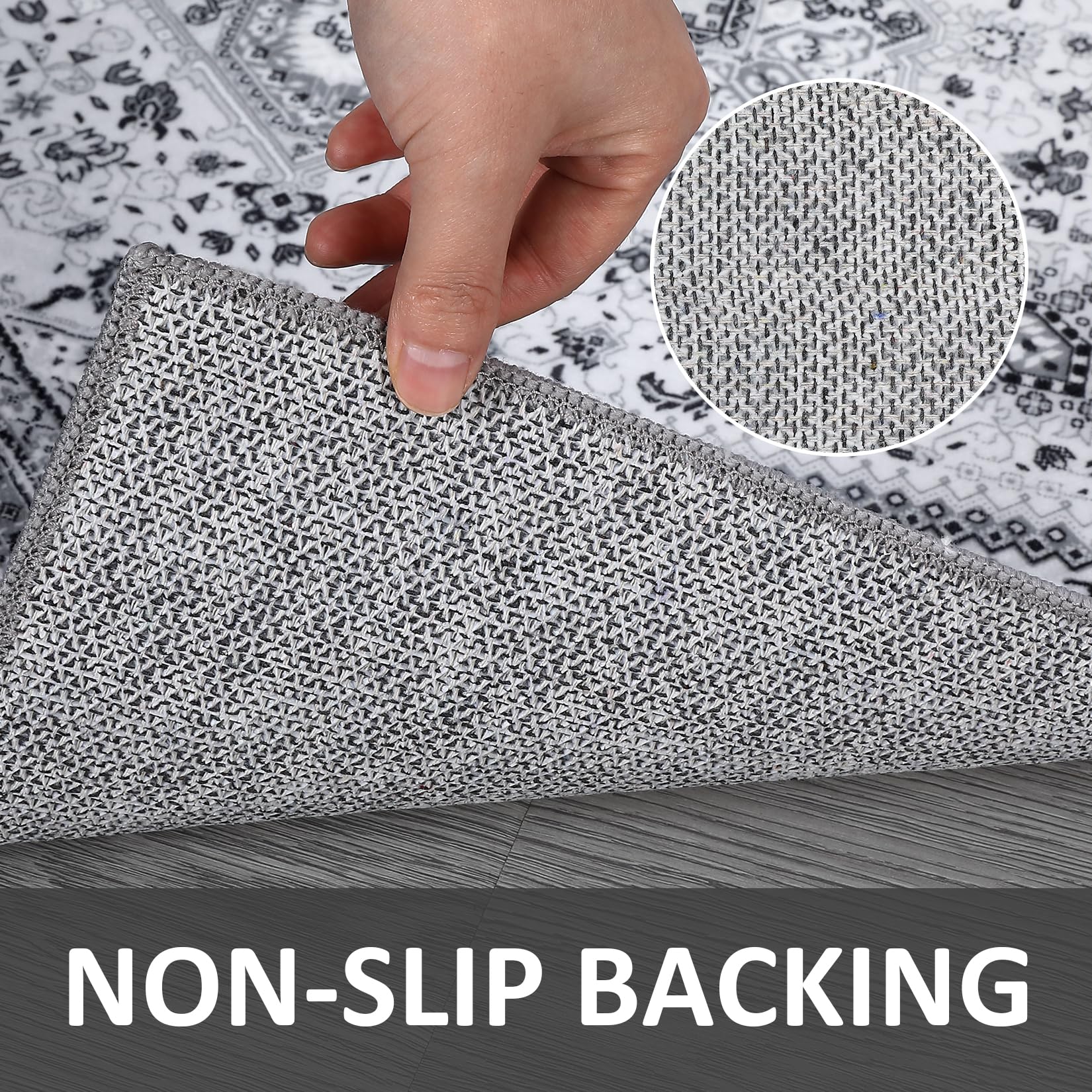 - 【NON-SLIP AREA RUG】-Our non-slip rug is made of high quality backing, which keeps the rug securely in place and effective at preventing the rug from sliding on the floor, while protecting the floor from scratches made by heels and sharp objects, safe for everyday indoor busy area for kids or pets activity.