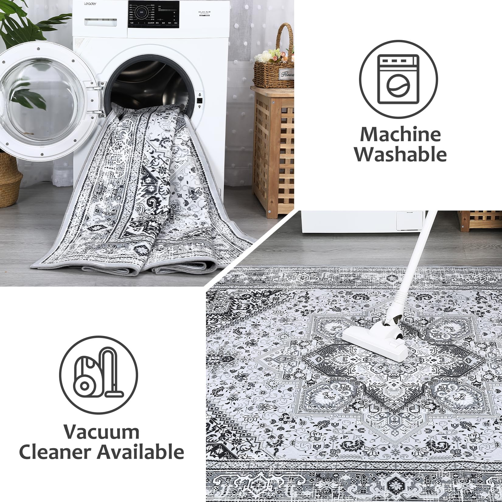 - 【MACHINE WASHABLE RUG】-Machine washable rug helps to make life much easier. Simply throw it in the washing machine. Wash with cold water, mild detergent, no bleach. Air dry, do not iron. The colors of the rug are vibrant and would not fade when it comes out even after several washes.