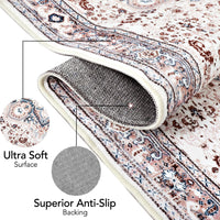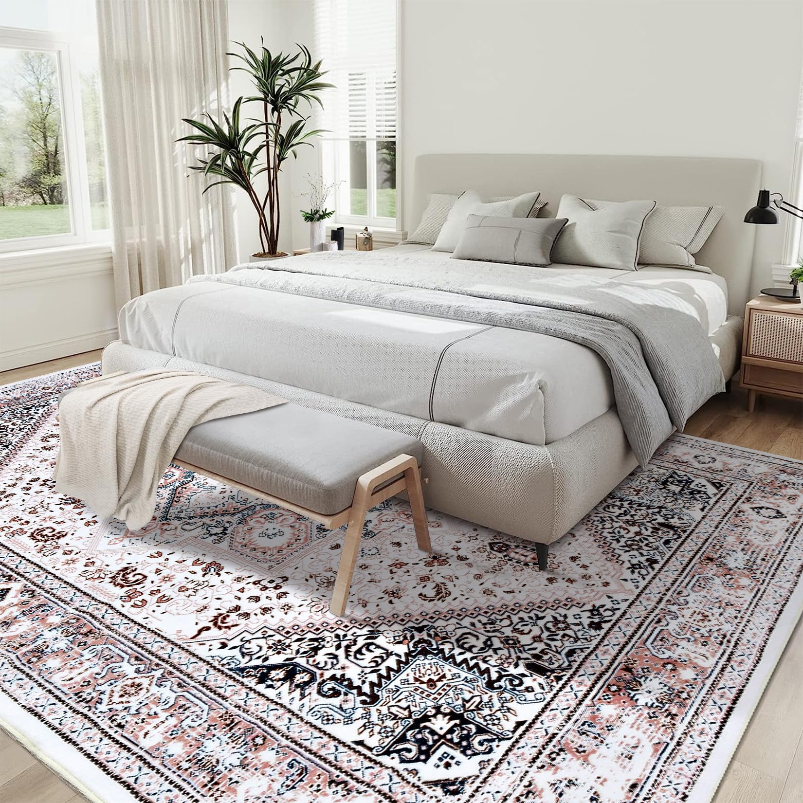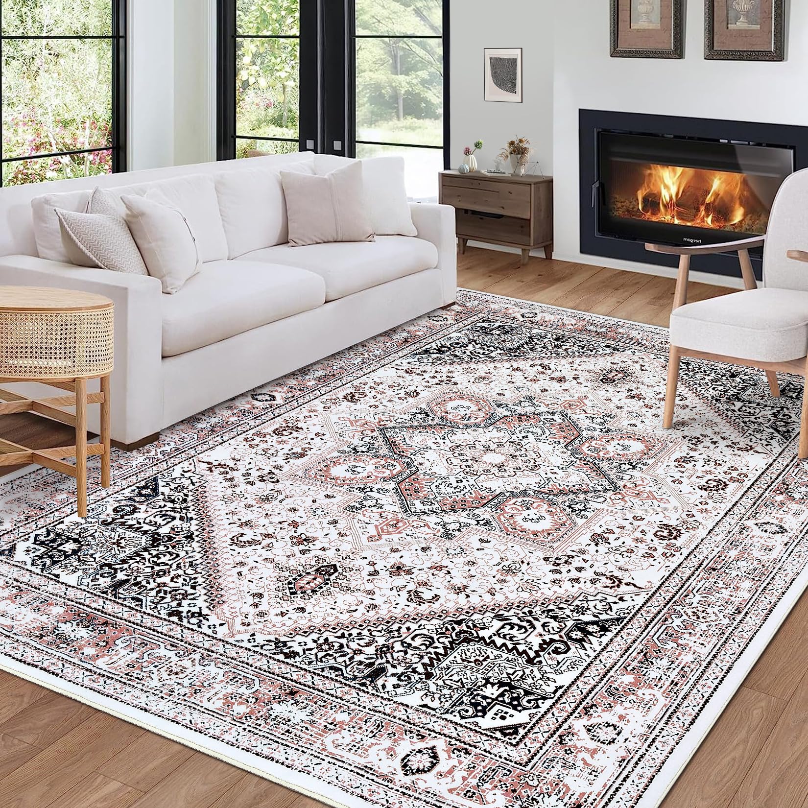 Garvee Vintage Washable Area Rug 4x6 Oriental Rug Medallion Rugs Pink Low-Pile Indoor Floral Print Carpet Boho Rug Non Slip & Foldable Accent Rug Printed Bohemian Rug for Living Room Bathroom
