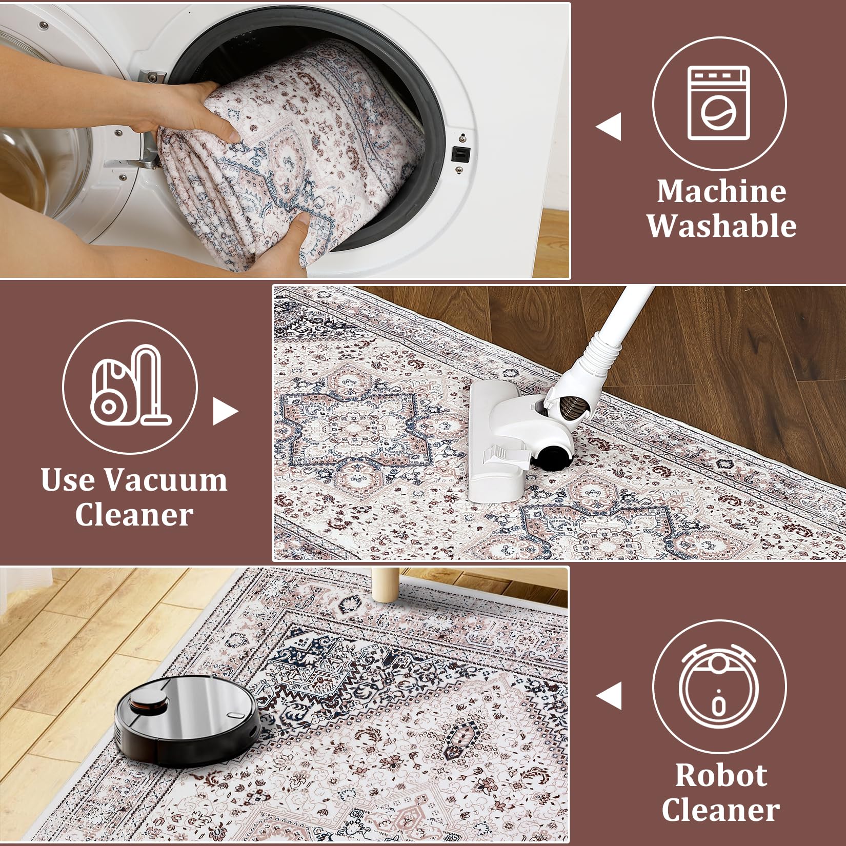 - 【MACHINE WASHABLE RUG】-Machine washable rug helps to make life much easier. Simply throw it in the washing machine. Wash with cold water, mild detergent, no bleach. Air dry, do not iron. The colors of the rug are vibrant and would not fade when it comes out even after several washes.