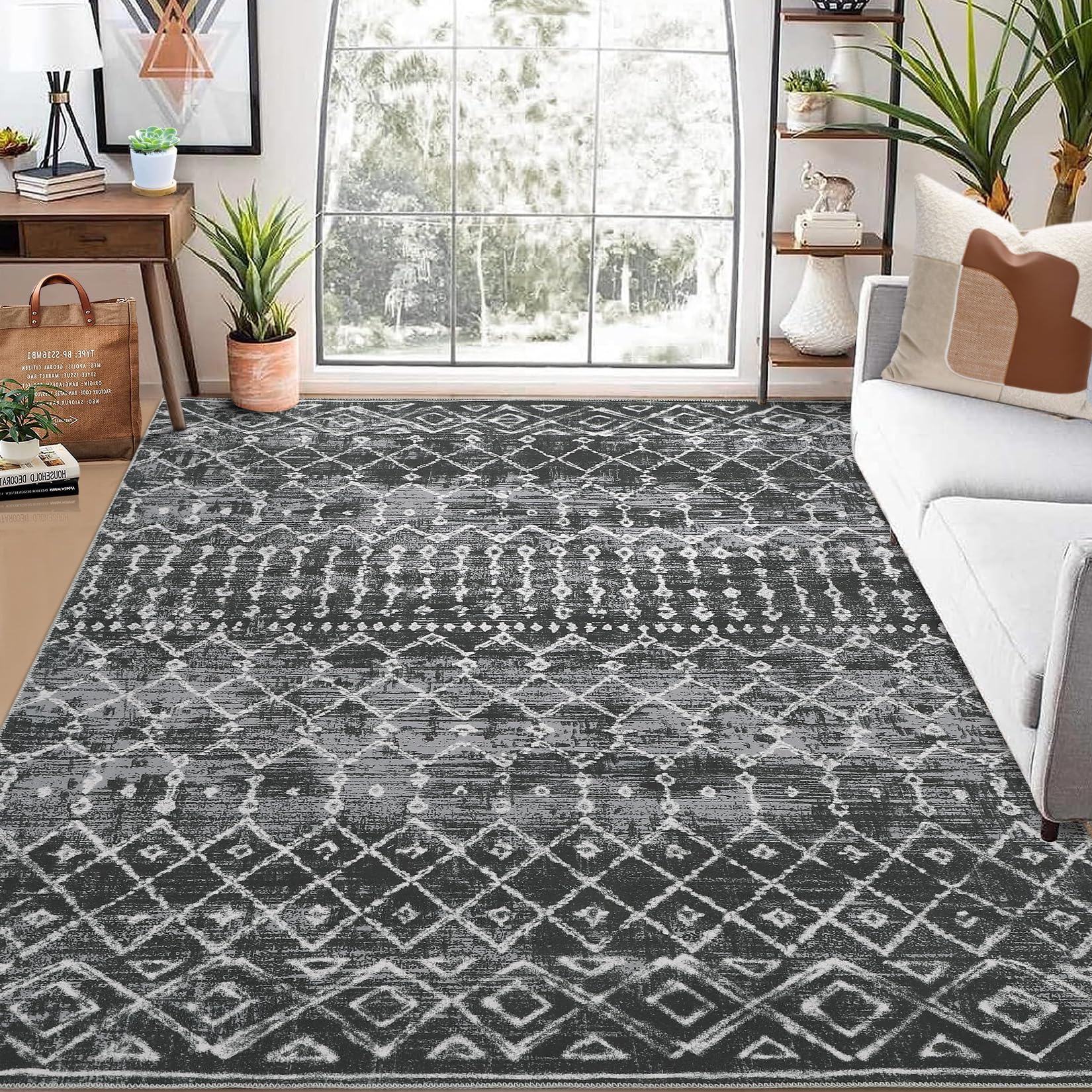 Garvee Bohemian Washable Rug 9x12 - Vintage Design, Non-Slip, Polyester, Washable, Stain Resistant, Living Room, Bedroom